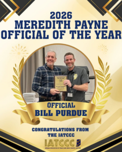 Congratulations to Bill Purdue the latest IATCCC Meredith Payne Official of the Year. He received the award at our annual meeting on February 6 where the award was presented by IATCCC Vice President, Jared Turner.
